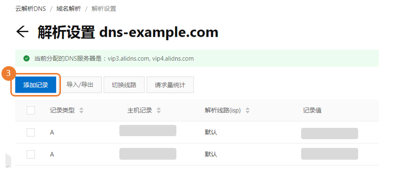 3 . 在解析設置頁面,單擊 添加記錄 按鈕