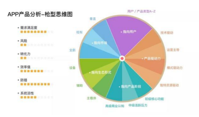 槍型思維圖,體現(xiàn)產(chǎn)品的5大階段,每個(gè)階段又分為若干模式或階段,絕大多數(shù) 產(chǎn)品能夠用這張圖表示出來(lái)。