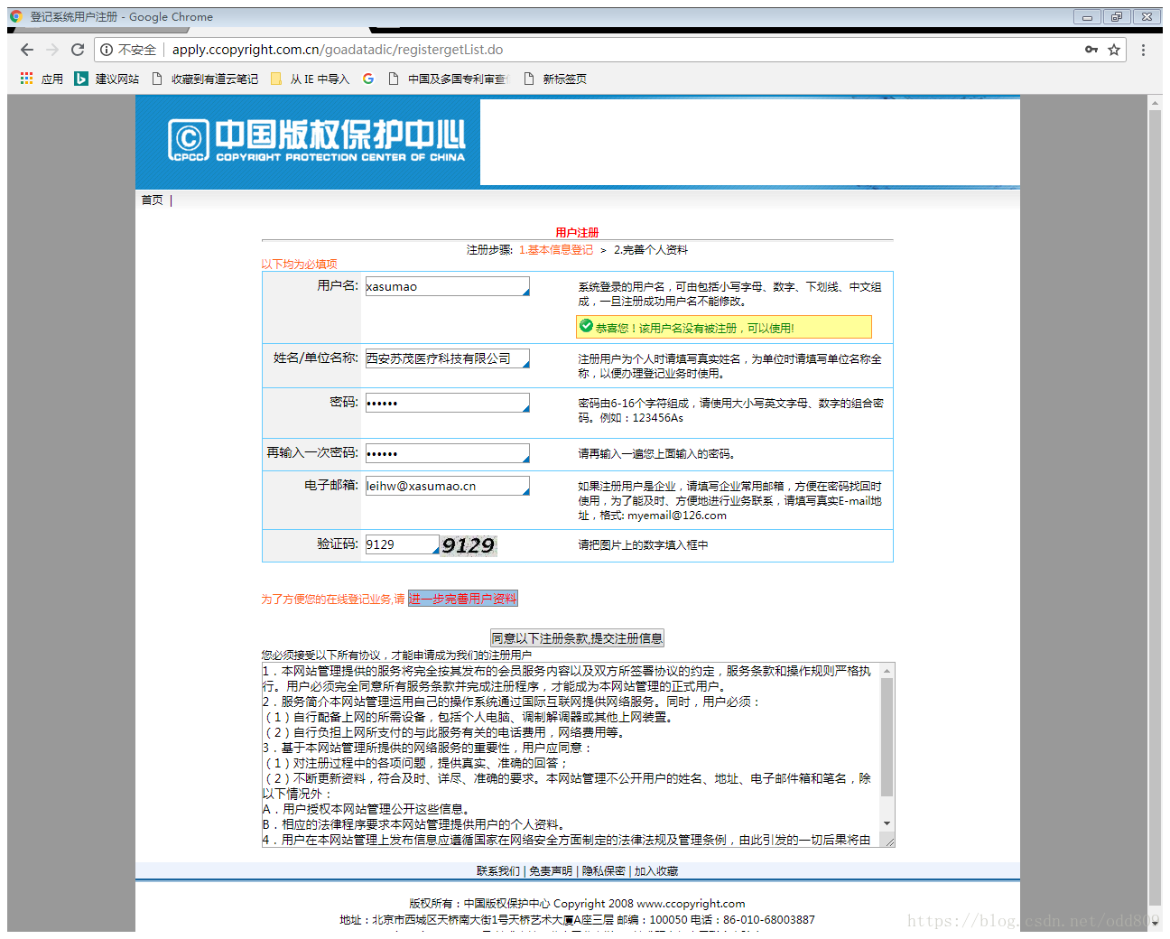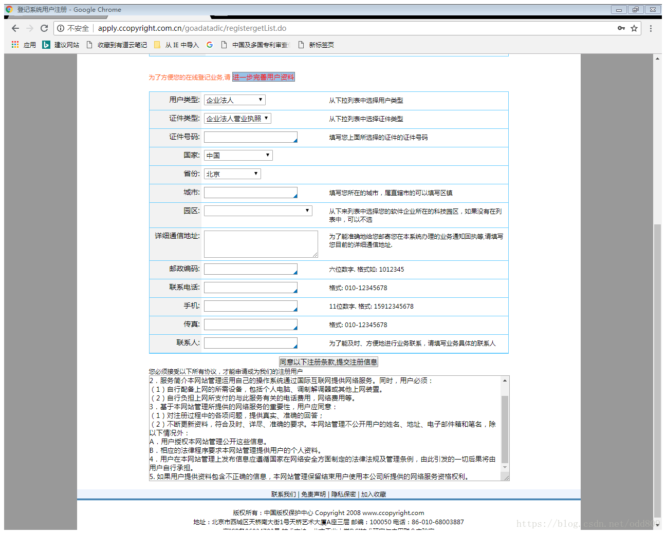 4、填寫完成后,點(diǎn)擊“同意以下注冊(cè)條款,提交注冊(cè)信息”