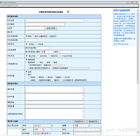 9、按照“計(jì)算機(jī)軟件著作權(quán)申請(qǐng)表”填寫相關(guān)內(nèi)容,最后保存和提交。